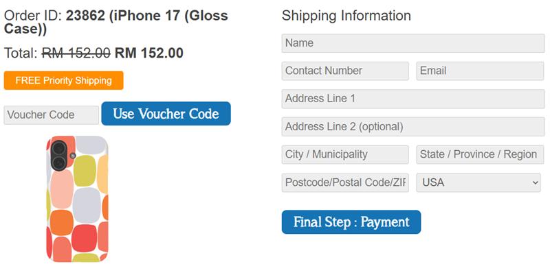 Final Step : Pay with credit card when you reach Paypal. Paypal is our credit card processor. Once payment is completed. We will print and ship your custom iPhone 17 phone case. Delivery take will roughly 10 days